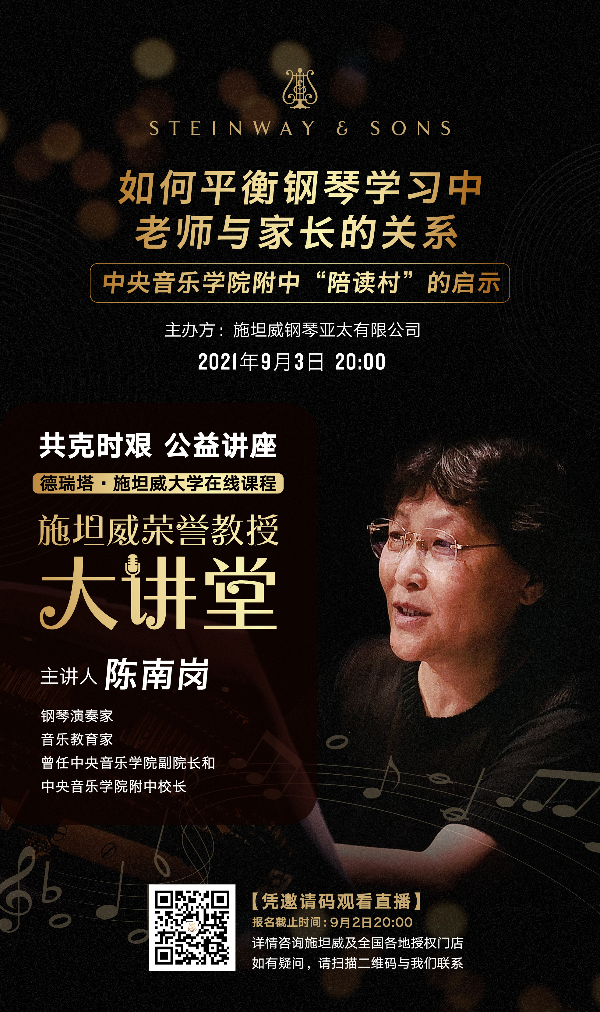 直播预告 | 施坦威荣誉教授陈南岗大讲堂