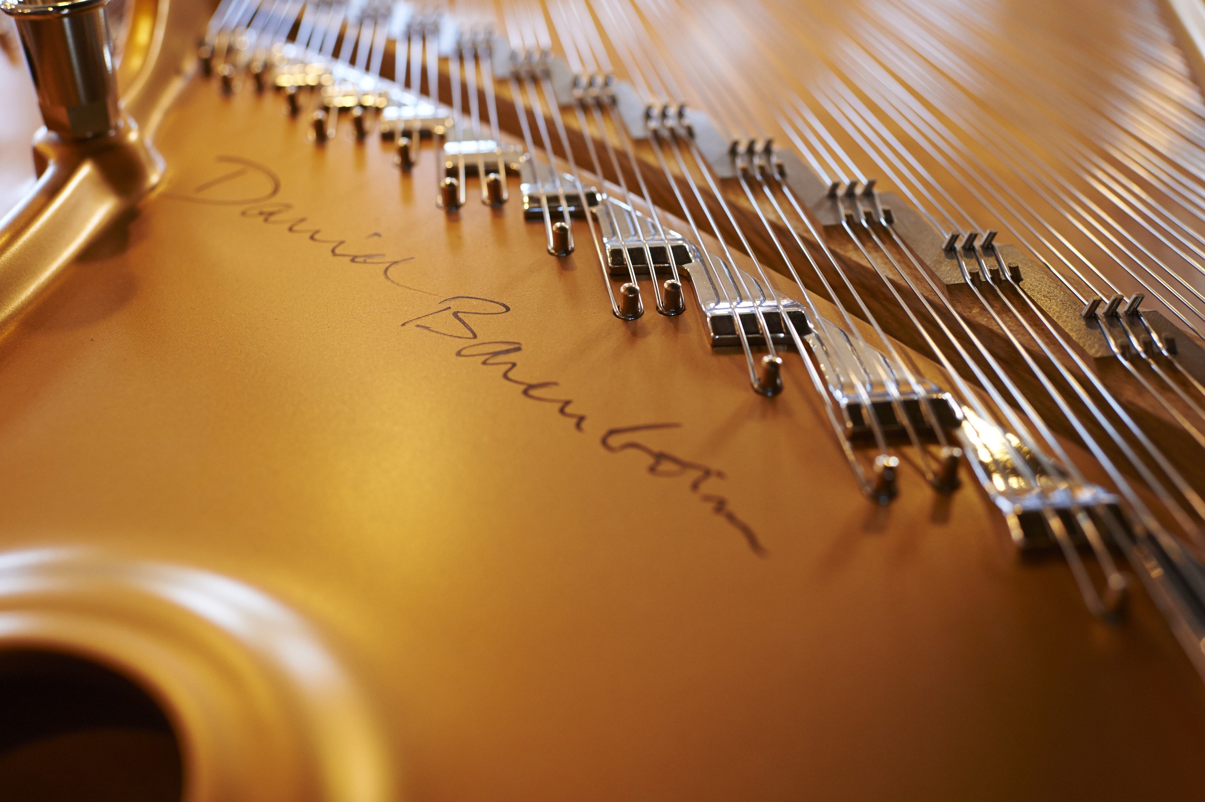 バレンボイム氏は、2015年10月10日にスタインウェイ・ハンブルク工場を訪れ、セレクションルームで自ら選定したスタインウェイ1台1台に彼自身のサインを入れました。