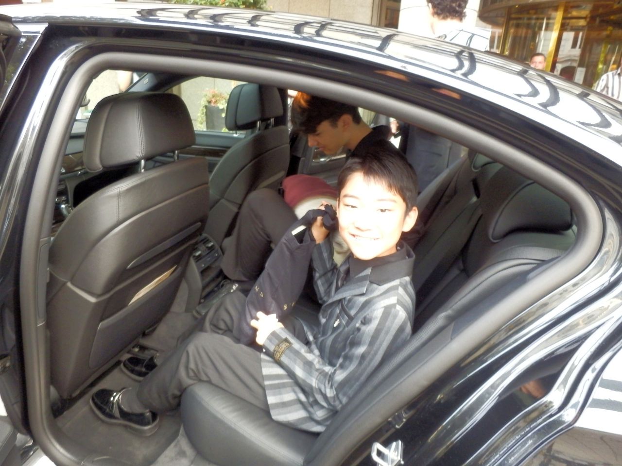朝: 演奏者はスタインウェイ社社長に連れられて、BMWに乗ってホールへ向かう