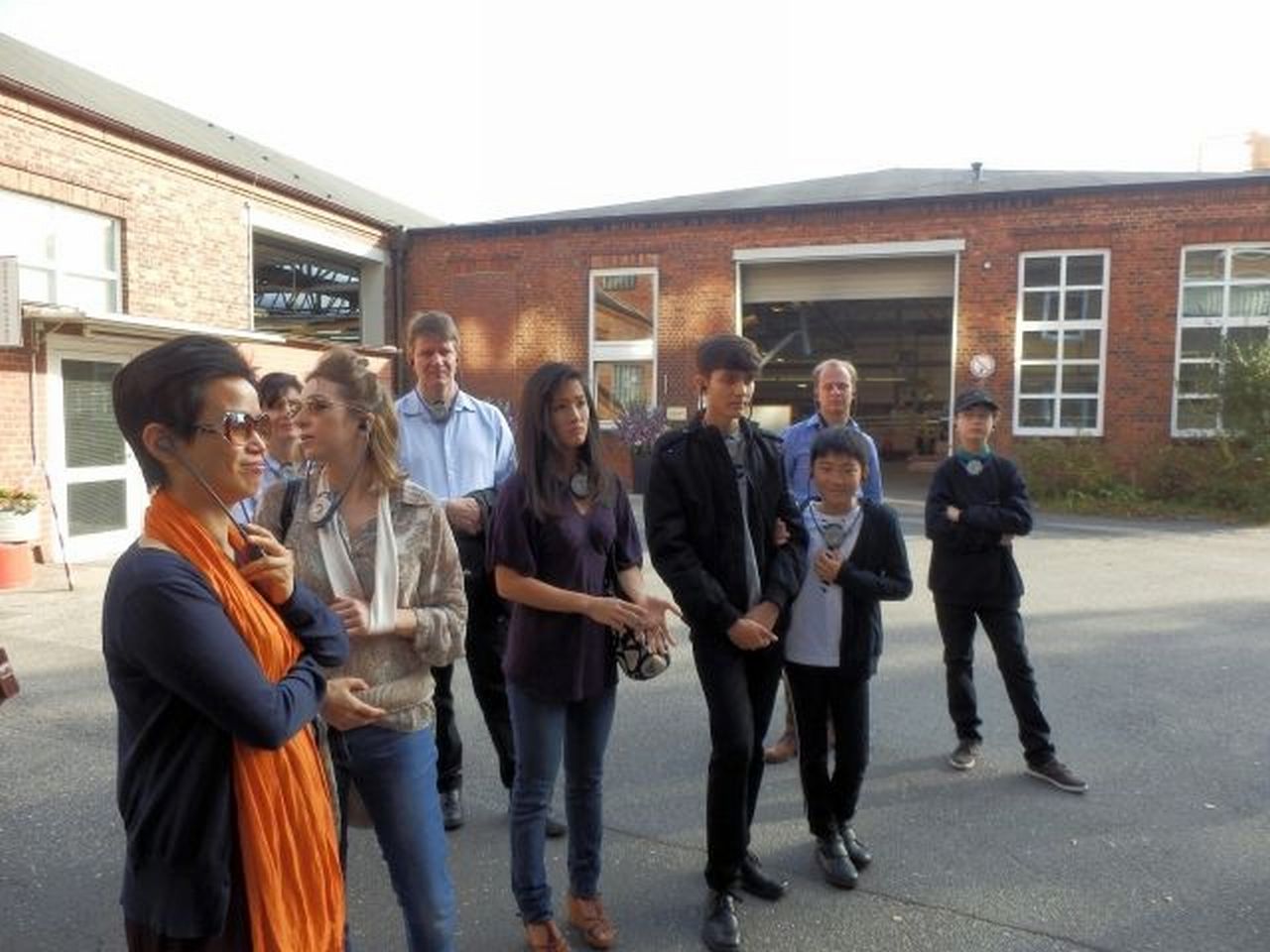 朝: 参加者全員でのスタインウェイの工場見学ツアー