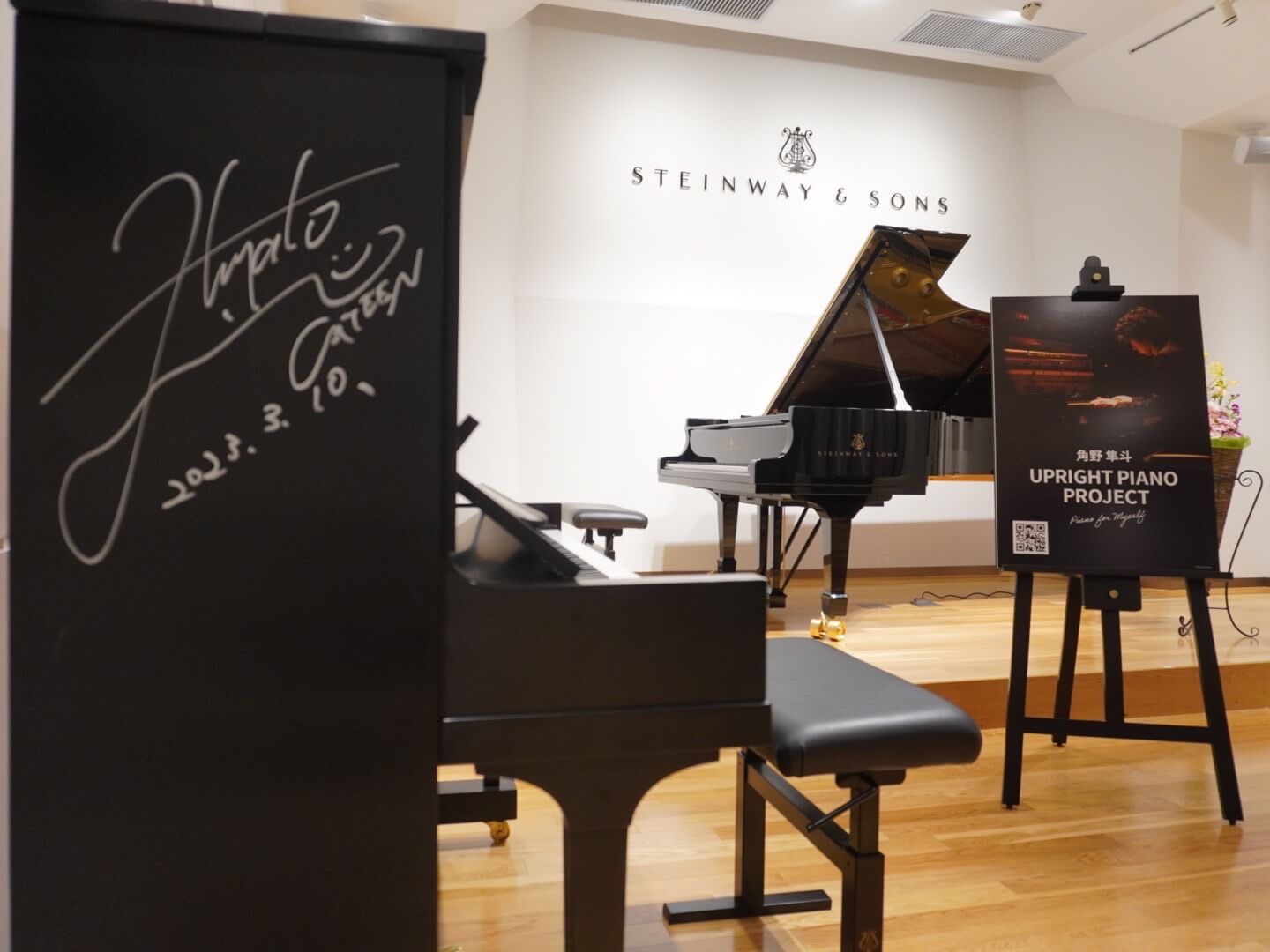 角野隼斗氏と全日本ピアノ指導者協会(ピティナ)が協働して運営する「角野隼斗 Upright Piano Project "Piano for Myself "」の第一弾として、北青山のスタインウェイ直営店「スタインウェイ&サンズ東京」のホールにかてぃんピアノの展示を行いました。