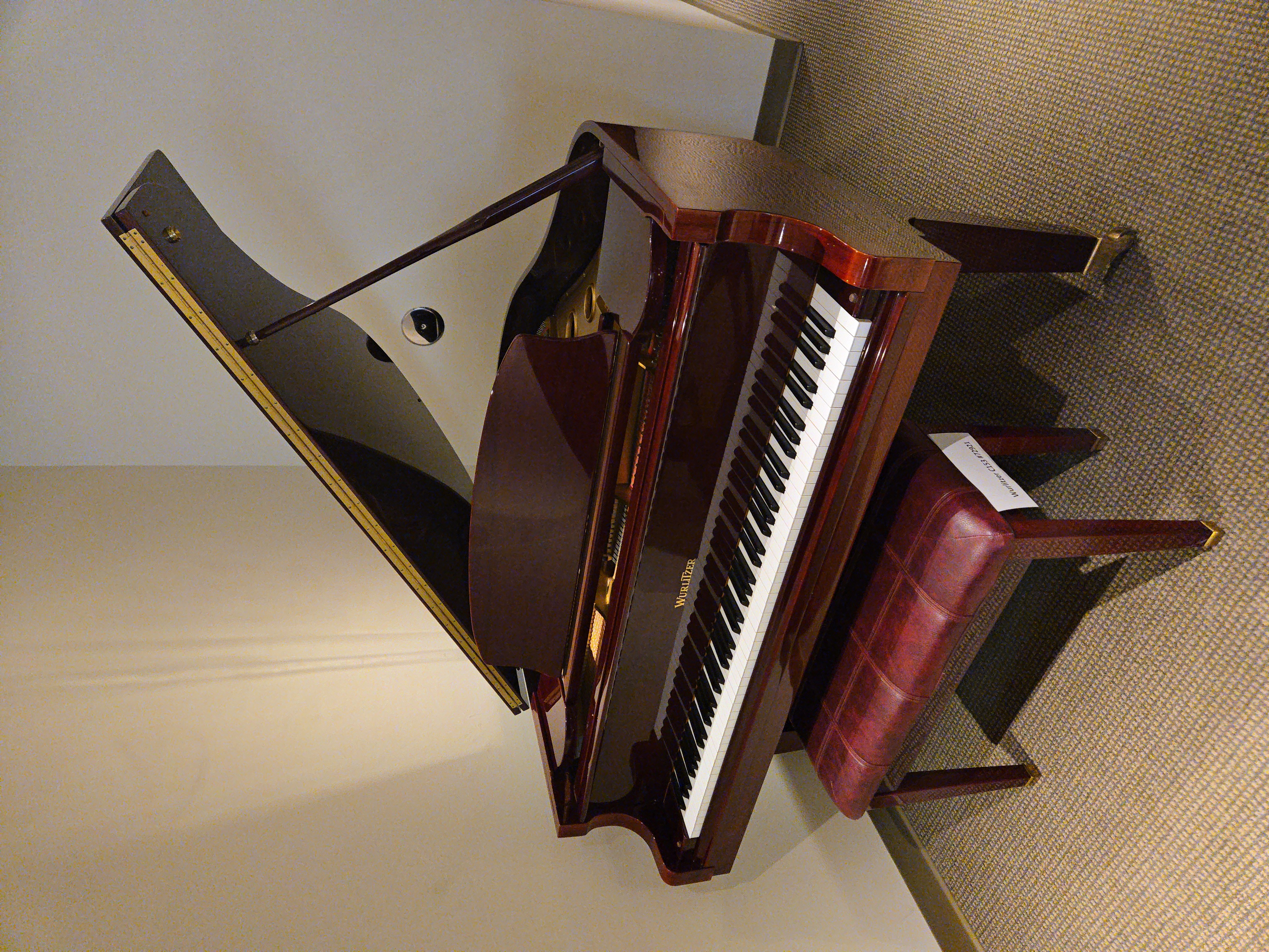 At 123 centimeters tall (48”), this is the tallest Essex upright. It was briefly used as a rental instrument. There are no signs of wear and tear. So you save money but get essentially a new piano because we can register the 10-year warranty to the person who buys this.